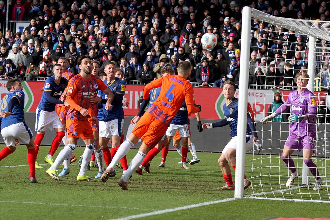 Hasan Kurucay köpft zum 2:0 für Schalke 04 bei Holstein Kiel ein. © 2026 Ismail Yesilyurt