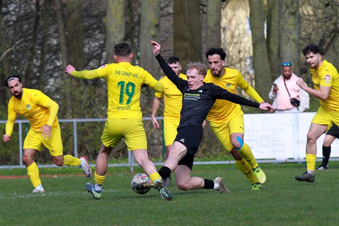 Mart Michelsen (TSV Hattstedt), der hier mit seinem Pass die Abwehr des SVE Comet aushebelt, machte mit seinem 3:3 die Partie gegen TSB sehr spannend. © 2026 Ismail Yesilyurt