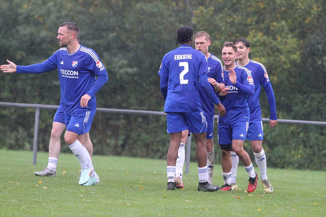 Nach dem Führungstreffer von Luca Aouci (2. v. r.) war noch alles im Lot bei der SpVg Eidertal Molfsee. © 2025 Ismail Yesilyurt