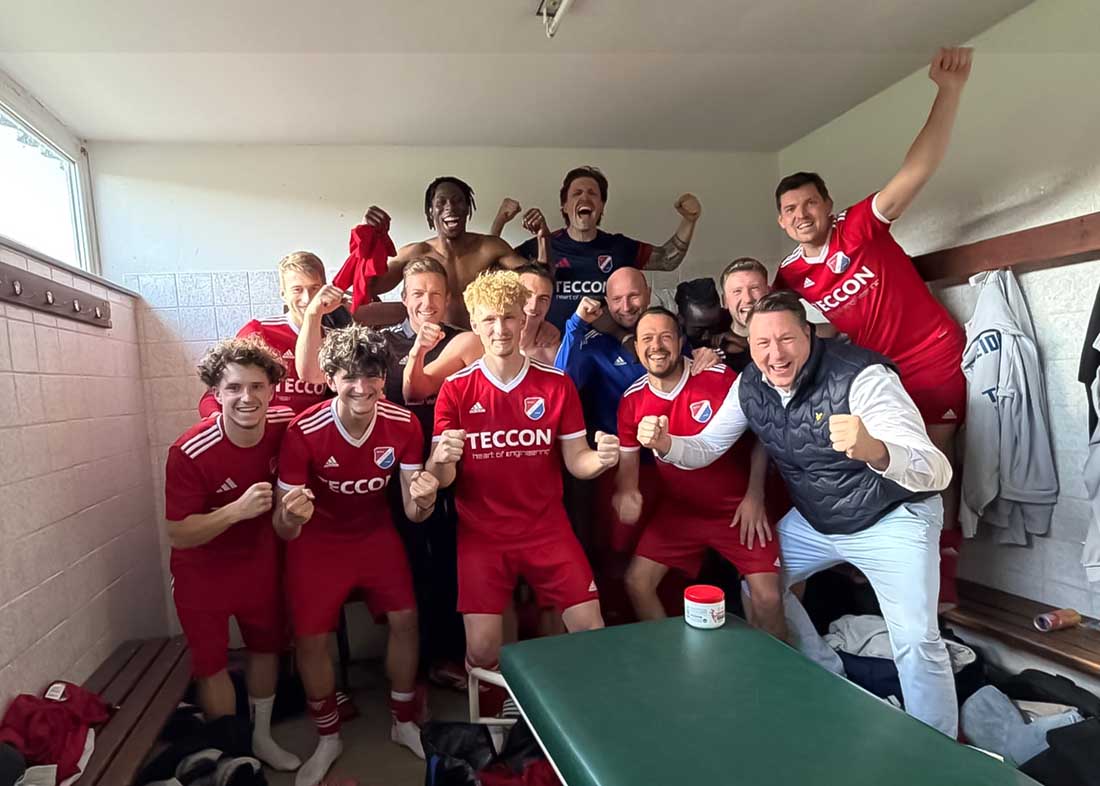Der Sieger SpVg Eidertal Molfsee II (rechts Trainer Chris Foley) direkt nach dem Spiel in der Kabine. © 2026 SpVg Eidertal Molfsee