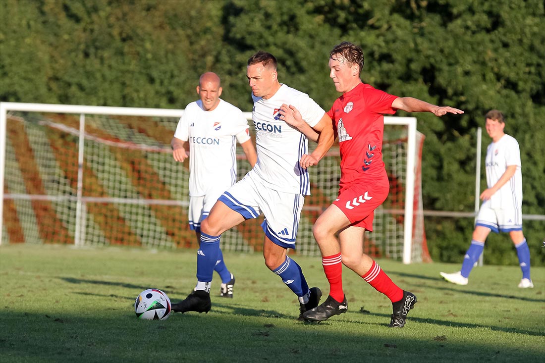 Ken-Marvin Smit (am Ball, SpVg Eidertal II) und Mitspieler legten gegen die SG Sarau-Bosau den Fokus auf die Defensive anstatt Offensive. © 2025 Ismail Yesilyurt