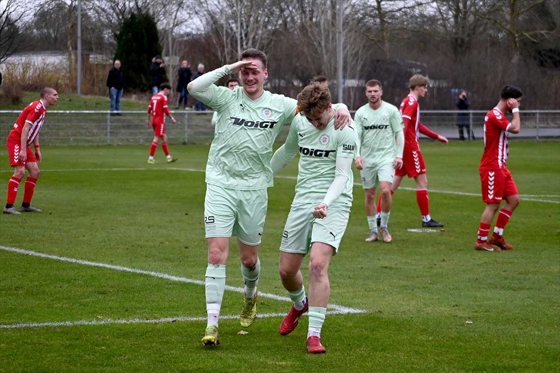 Timo Barendt rettete dem PSV Neumünster einen Punkt. Rechts Meiko Werner.