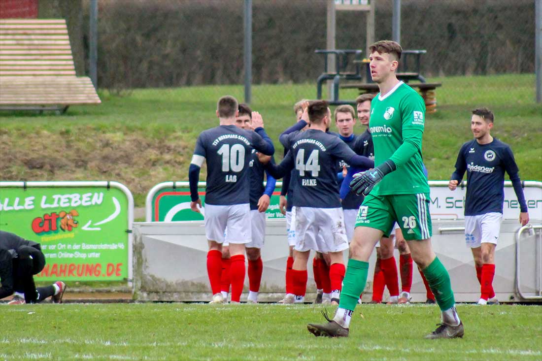 Das änderte sich erst Mitte der zweiten Halbzeit, als sich Tarek Böhlen nach einem langen Ball bei einem Klärungsversuch verschätzte und Tom Karshüning (64.) eine flache Hereingabe zum Führungstreffer nutzte. Bitter für die Dithmarscher, die bis dahin schon einige Torannäherungen hatten, war, dass Marvin Wolf unmittelbar vor dem Gegentreffer nach einer Flanke von Björn Lambach den Ball knapp neben das Tor setzte.