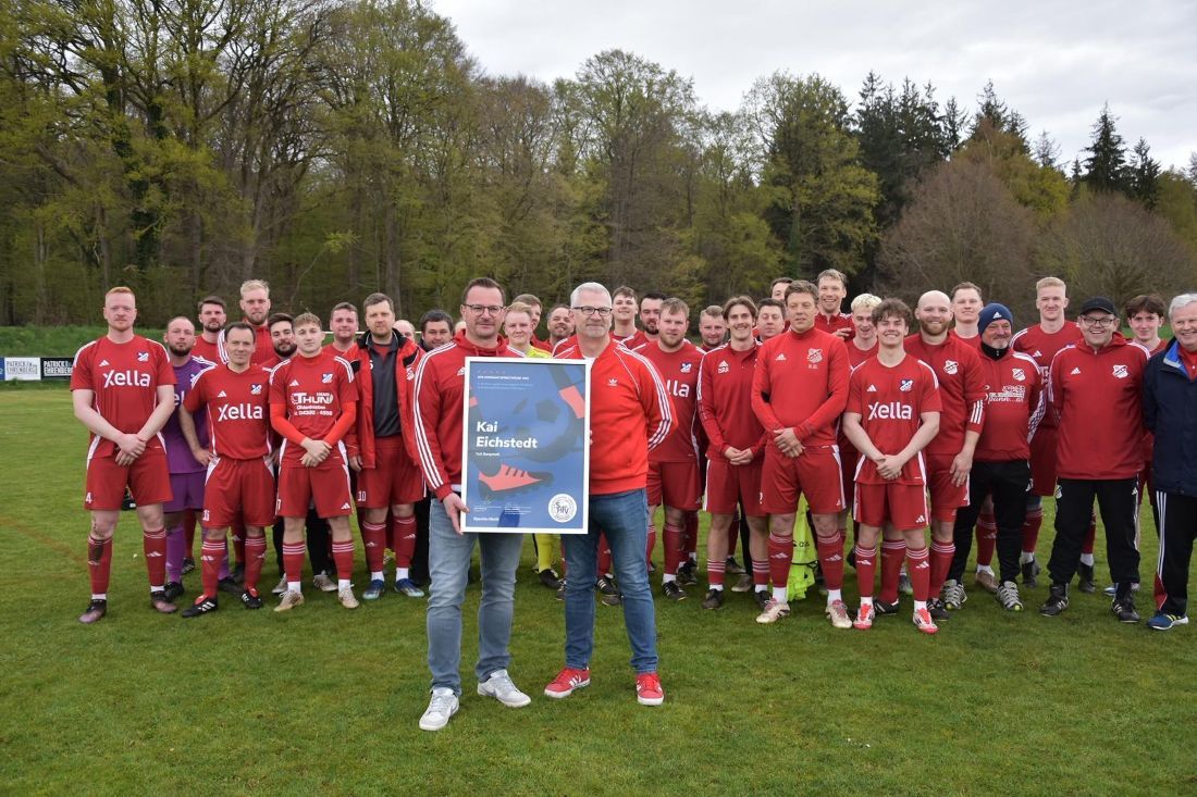 Am 19.4. wurde Kai Eichstedt auf dem Sportplatz in Bargstedt von Stefan Wiese (SHFV) mit dem DFB-Ehrenamtspreis 2026 ausgezeichnet. Über Jahre hat Kai sich als Jugendtrainer, Vereinsvorstand und Organisator von Veranstaltungen im Verein eingesetzt.