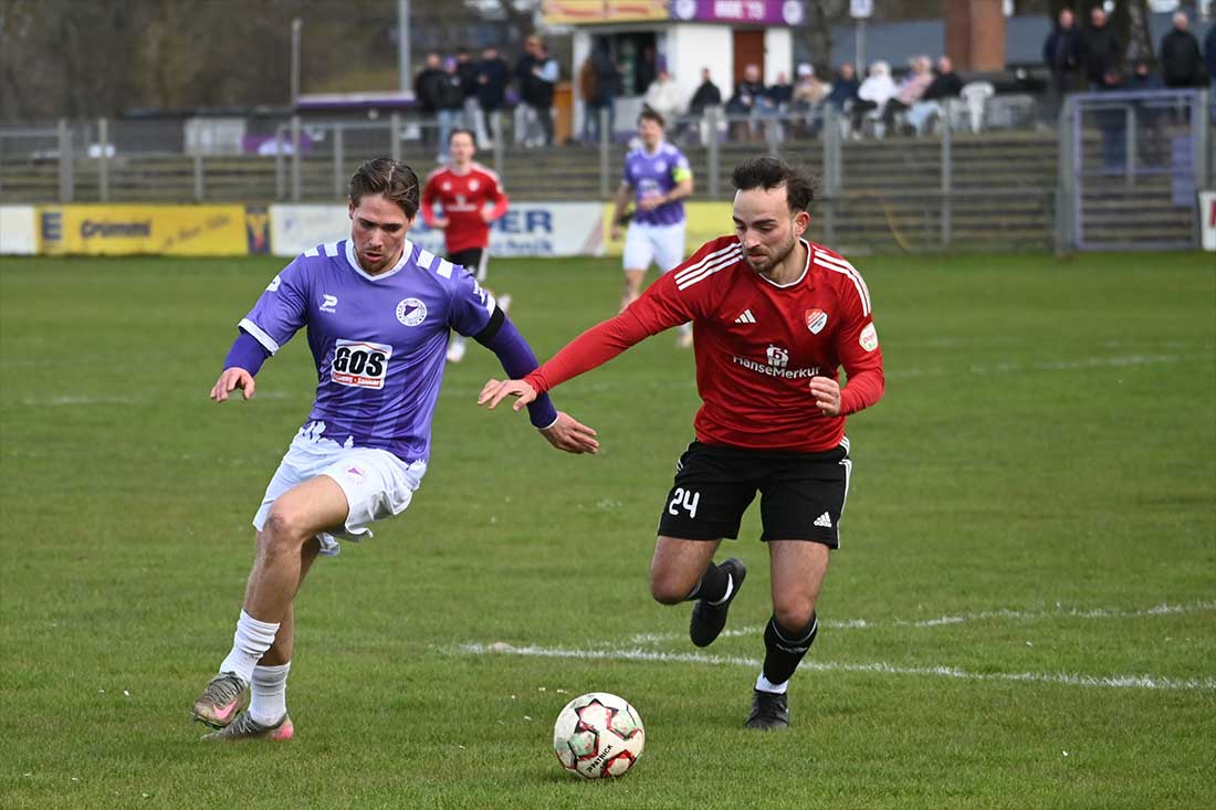 Jordan Marquardt (VfR) gegen Görkem Güvenir (re., KTS). © 2026 Olaf Wegerich