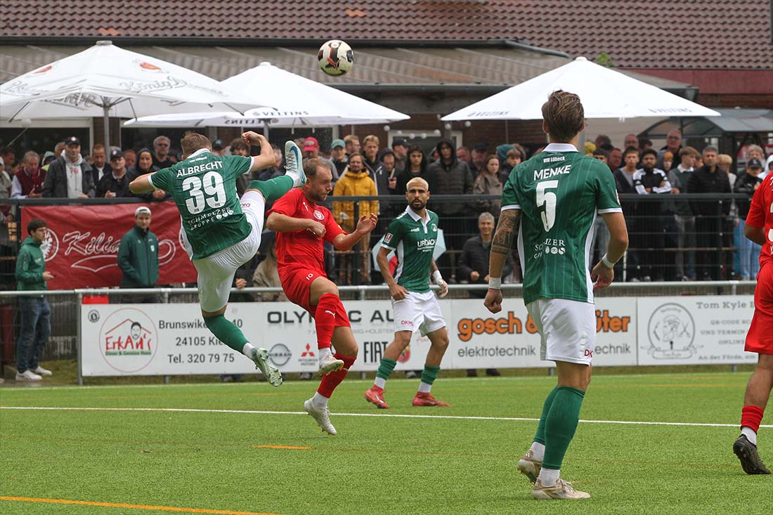 Kurz zuvor war Kilia durch den sehenswerten Kopfballaufsetzer von Lucas Groß zum 1:2 noch einmal herangekommen. Vorbereiter war Drilon Trepca mit einer starken Flanke. Dem Neuzugang vom Heider SV wäre fast noch sein Doppelpack gelungen, doch Groß rutschte knapp am Ball und damit am möglichen 2:2 vorbei.
