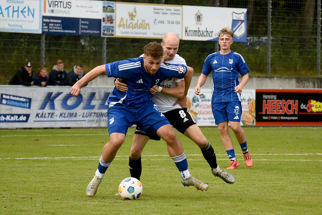 Dann wurde es für einige Minuten sehr unschön, und die Gemüter erhitzten sich. Zunächst sah Gästespieler Dennis Bienwald (39.) nach einem Schuss aus Nahdistanz an den Solarplexus von Marten Soder die gelbe Karte. Doch dann ließ sich Lennart Pietsch (39.) zu einem leichten Schubser gegen Felix Knuth hinreißen und bekam von Schiedsrichter Moritz Bern dafür sofort die rote Karte gezeigt. „Das war natürlich nicht clever von ihm und für uns danach sehr kräftezehrend“, sagte KTS-Trainer Martin Genz, der danach vor allem die große Gefahr fürchtete, die durch die „überragenden Standards“ von Mats Henke ausging.
