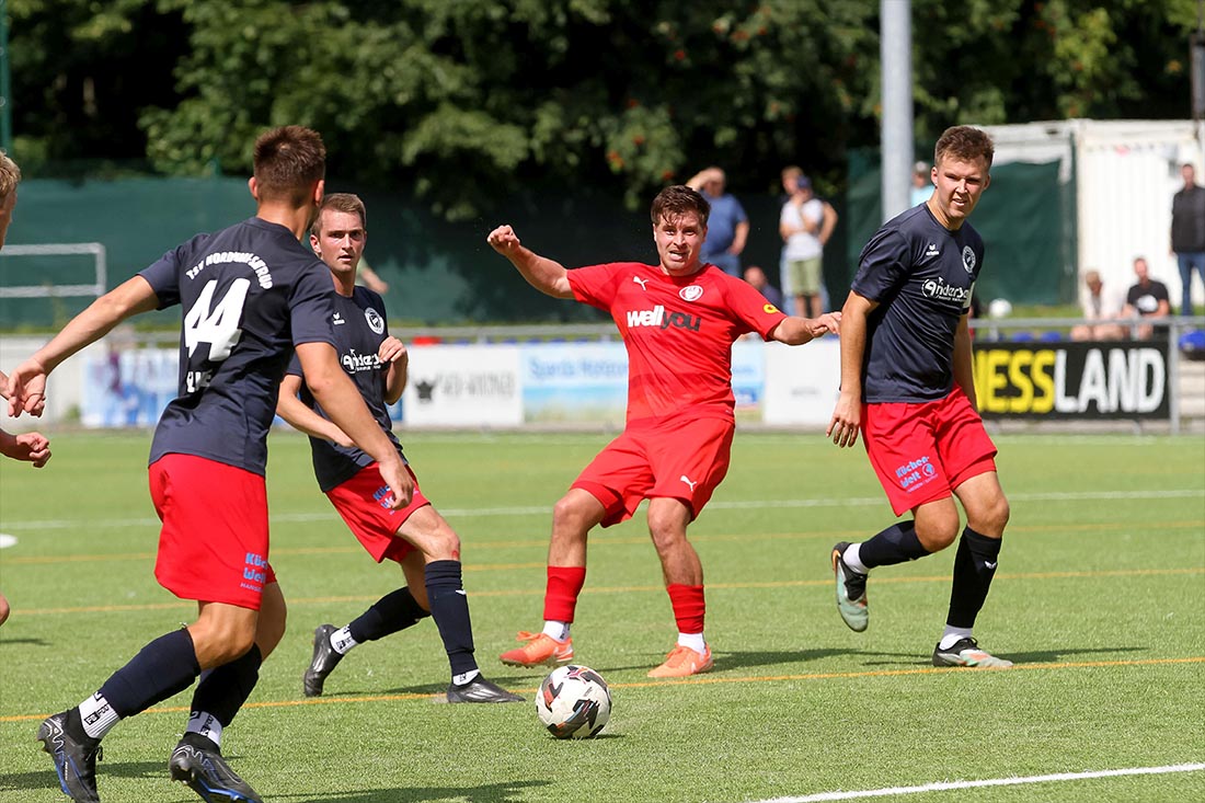 Bereits unter der Woche hatte sich beim MTSV Niklas Neitzke im Trainingsbetrieb eine Knieverletzung zugezogen. Eine MRT-Untersuchung in der kommenden Woche soll Klarheit über die Schwere der Verletzung bringen. Mit Thies Kochanski (kurzfristig verhindert), Jan Nötzelmann (privat verhindert) und Luca Ubben (Schichtdienst) gab es weitere Ausfälle zu beklagen. Dafür durfte mit Louis Klatt, dem Neuzugang aus der U23 des Heider SV, nach langer Verletzungspause sein Saisondebüt als linker Verteidiger feiern. Er ersetzte Jannis Brandt, der erst am Freitag aus dem Urlaub zurückgekehrt war, aber später dann doch noch eingewechselt wurde, weil Klatt ein Zwicken am Oberschenkel verspürte.