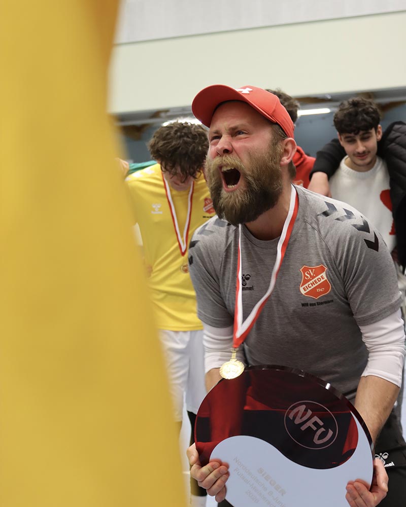 Die U17 des SV Eichede hat am Sonntag, den 15. Februar, sensationell die Norddeutsche Futsal-Meisterschaft gewonnen. Der Klub aus dem Kreis Stormarn ist damit erstmals in der Vereinsgeschichte für die deutsche Meisterschaft qualifiziert. „Wir haben uns natürlich Chancen ausgerechnet, aber dass wir hier gewinnen, ist absolut verrückt“, sagte Gaćanović freudestrahlend in den Katakomben der Harburger CU-Arena.