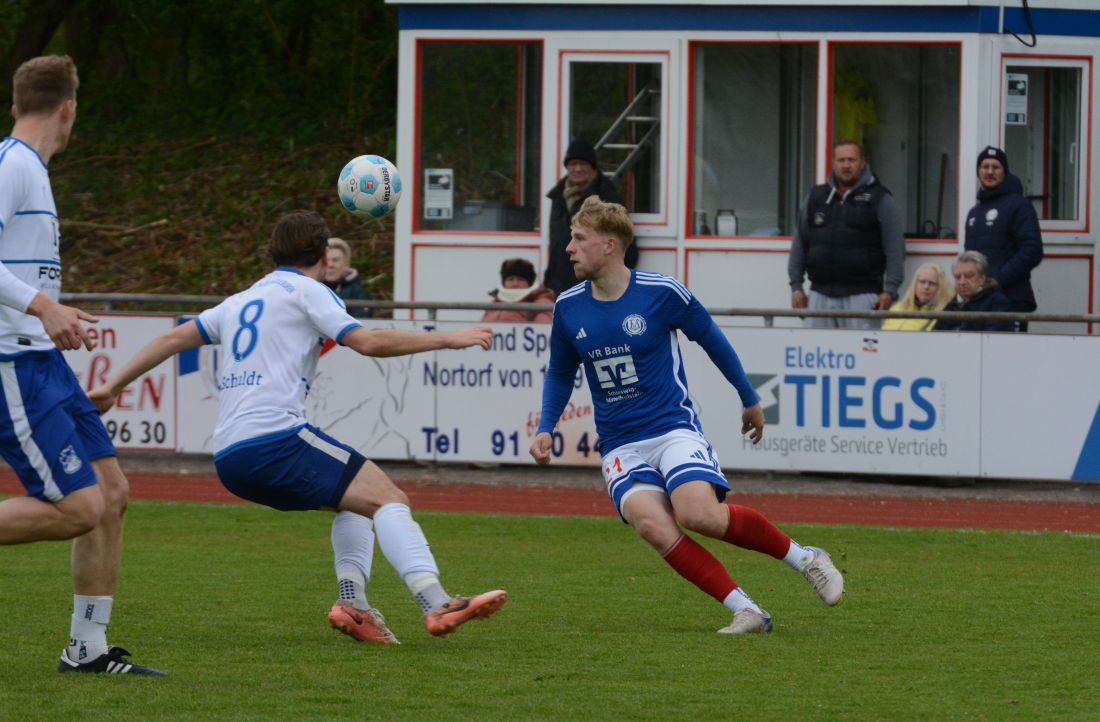 In der Verbandsliga West fehlen dem souveränen Spitzenreiter TUS Nortorf nach dem hart erkämpften 3:1-Heimerfolg gegen den überraschend starken Aufsteiger SV BW Wesselburen nur noch vier Punkte, um ganz sicher Meister zu werden. Trotz einiger Schwierigkeiten gegen den mutigen Aufsteiger aus Dithmarschen ist die Mannschaft von Trainer Jan-Niclas Bräunling seit nunmehr 21 Spielen ungeschlagen. Mit Jasper Schwarz vom MTSV Hohenwestedt, der sein Engagement beim Flens-Oberligisten bereits in der Winterpause beendete, steht der erste Neuzugang für die kommende Saison bereits fest.