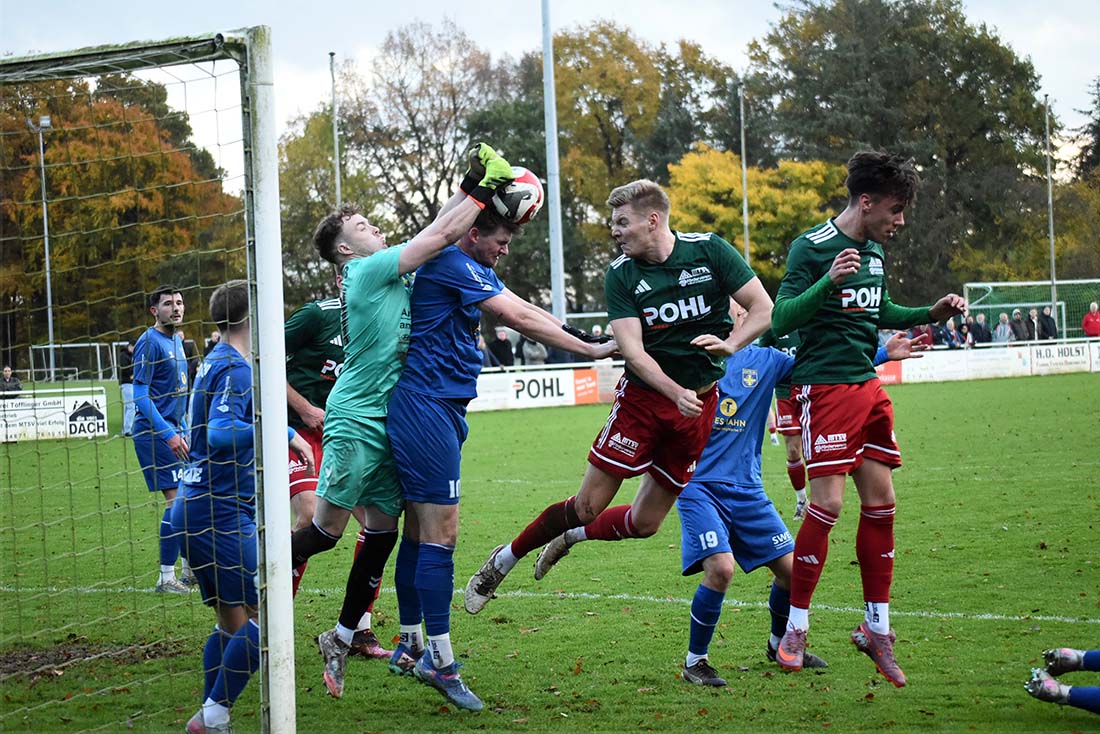 Dann bekommen die Gastgeber nach einem Foul an der Strafraumgrenze einen Freistoß zugesprochen. Den tückischen Aufsetzer von Jannes Dolling kann Torhüter Luca Kiecok in seinem ersten Oberligaspiel nur unglücklich nach vorne abwehren – doch schon ist Kjell Knaack (58.), der Mann mit dem eingebauten Torriecher, zur Stelle und kann mit seinem bereits 13. Saisontreffer den 1:2-Anschlusstreffer erzielen.