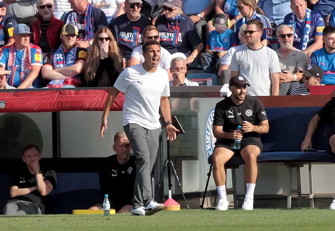 Macht Trainer Marcel Rapp (Holstein Kiel) seinen Hattrick? © 2024 Ismail Yesilyurt