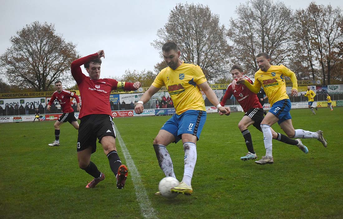 Auch die zweite Hälfte begann mit einem Paukenschlag der Gastgeber. Nach einer schönen Kombination von Noel Denis, der auch am zweiten Treffer maßgeblich beteiligt war, und Mirko Boland, der den Ball scharf vors Tor schlägt, muss Morten Liebert (50.) nur noch den Fuß hinhalten, um auf 2:0 zu erhöhen. Für Vollblutstürmer Liebert war es bereits der 13. Saisontreffer. Damit hat er mit Kjell Knaak vom MTSV Hohenwestedt gleichgezogen.