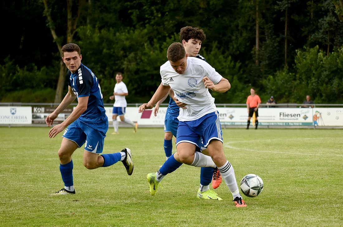 Rantrums Trainer Erik von Lanken sah seine Elf nach dem frühen Schock jedoch zunächst gut im Spiel. Trotz der schwierigen Bedingungen durch den starken Wind erarbeiteten sich die Hausherren Spielanteile über die Außenbahnen durch Damian Krause und Oke Flatterich.