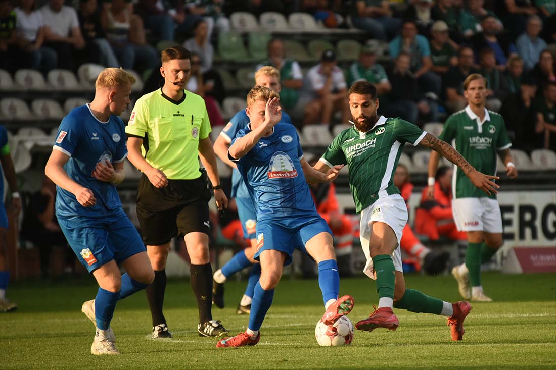Mikail Polat (am Ball) den VfB Lübeck in Front. © 2025 Olaf Wegerich