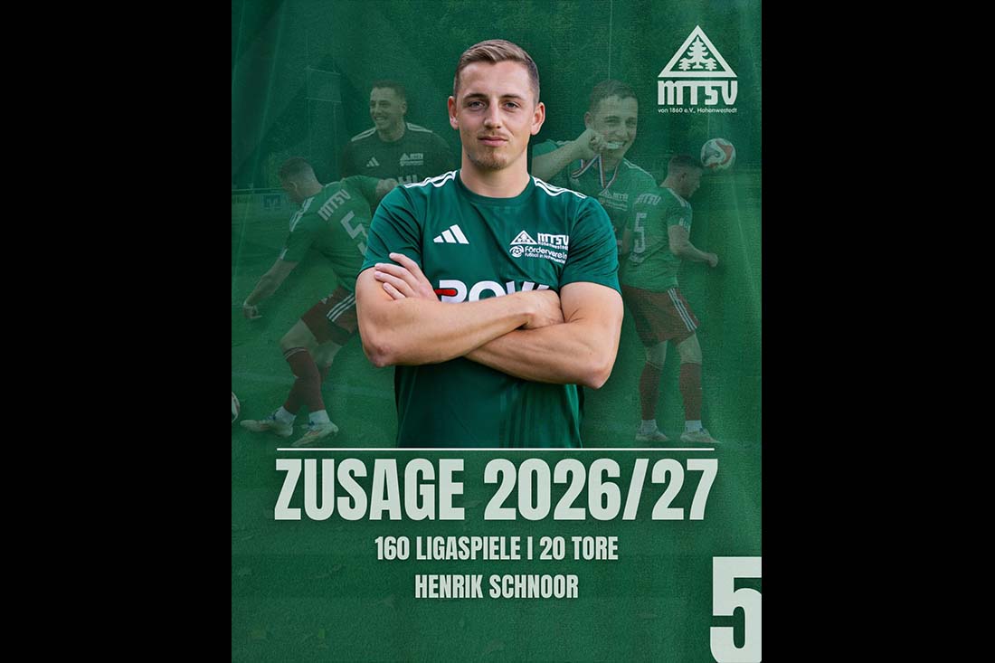 Trainer Arend Müller: „Je länger Henni auf dem Platz steht, desto mehr wächst er über sich hinaus. Mit seiner enormen Zweikampfstärke gibt er dem Team Sicherheit und Stabilität. Besonders bei Standards ist er immer brandgefährlich und kann Spiele entscheiden. Wir sind sehr stolz und glücklich, dass Henni weiterhin das Trikot seines MTSV trägt.“